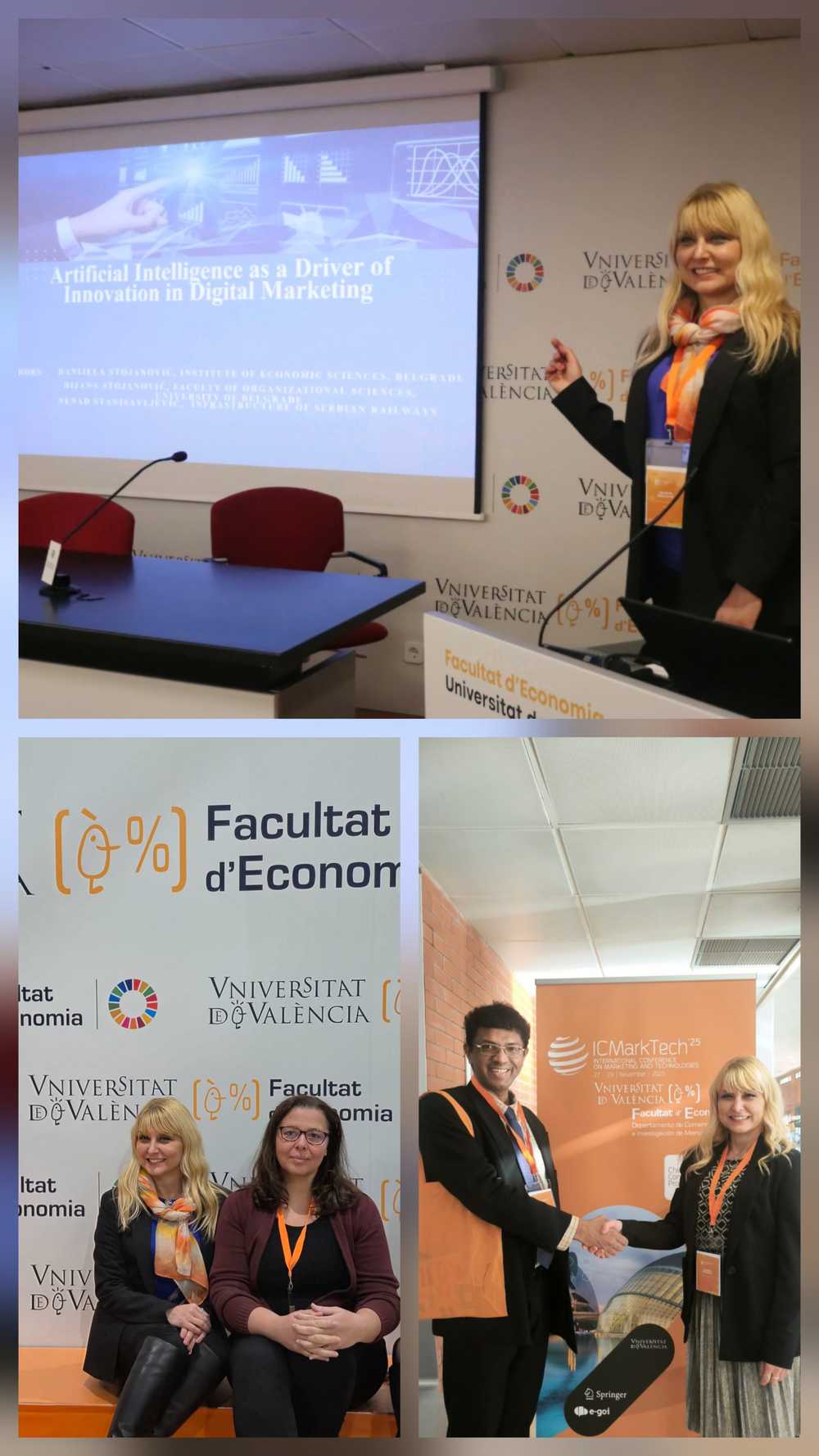 Dr Danijela Stojanović, naučna saradnica na Institutu ekonomskih nauka, učestvovala je na međunarodnoj konferenciji ICMarkTech 2025, gde je prezentovala naučni rad “Artificial Intelligence as a Driver of Innovation in Digital Marketing”, čiji su koautori Dijana Stojanović i Nenad Stanisavljević. Rad predstavlja rezultat saradnje sa Fakultetom organizacionih nauka Univerziteta u Beogradu i Infrastrukturom Železnice Srbije, čime dodatno potvrđuje značaj povezivanja naučne i akademske zajednice sa privredom u razvoju naprednih digitalnih rešenja.